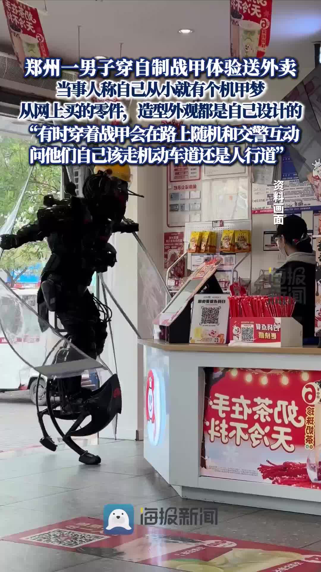 • 鄭州一男子穿自制戰甲體驗送外賣,還問交警:我該走人行道還是機動車道